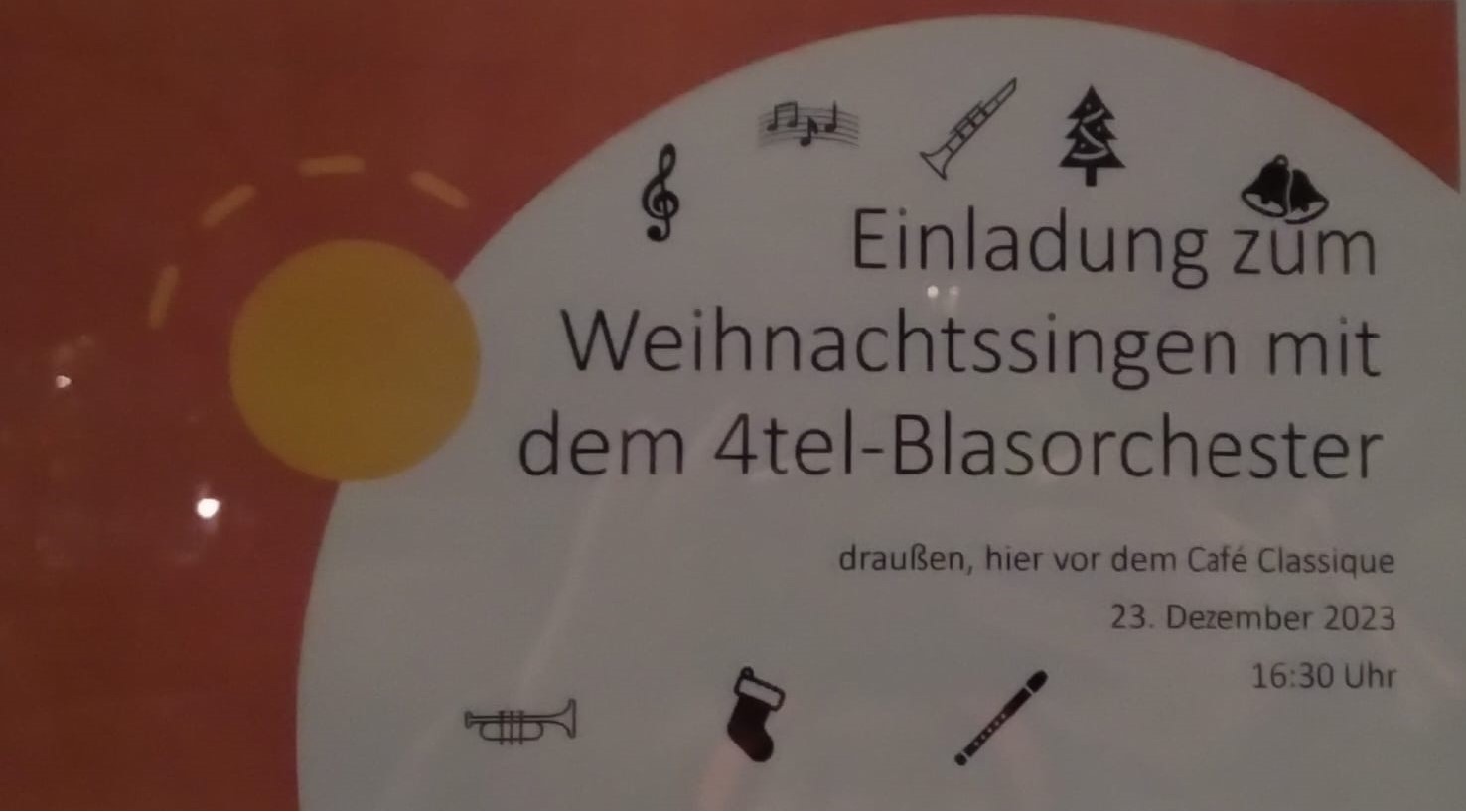Das diesjährige Weihnachtssingen findet am 23. Dezember 2024 ab 16:30 vor dem Kling Klang auf dem Staufenplatz statt.