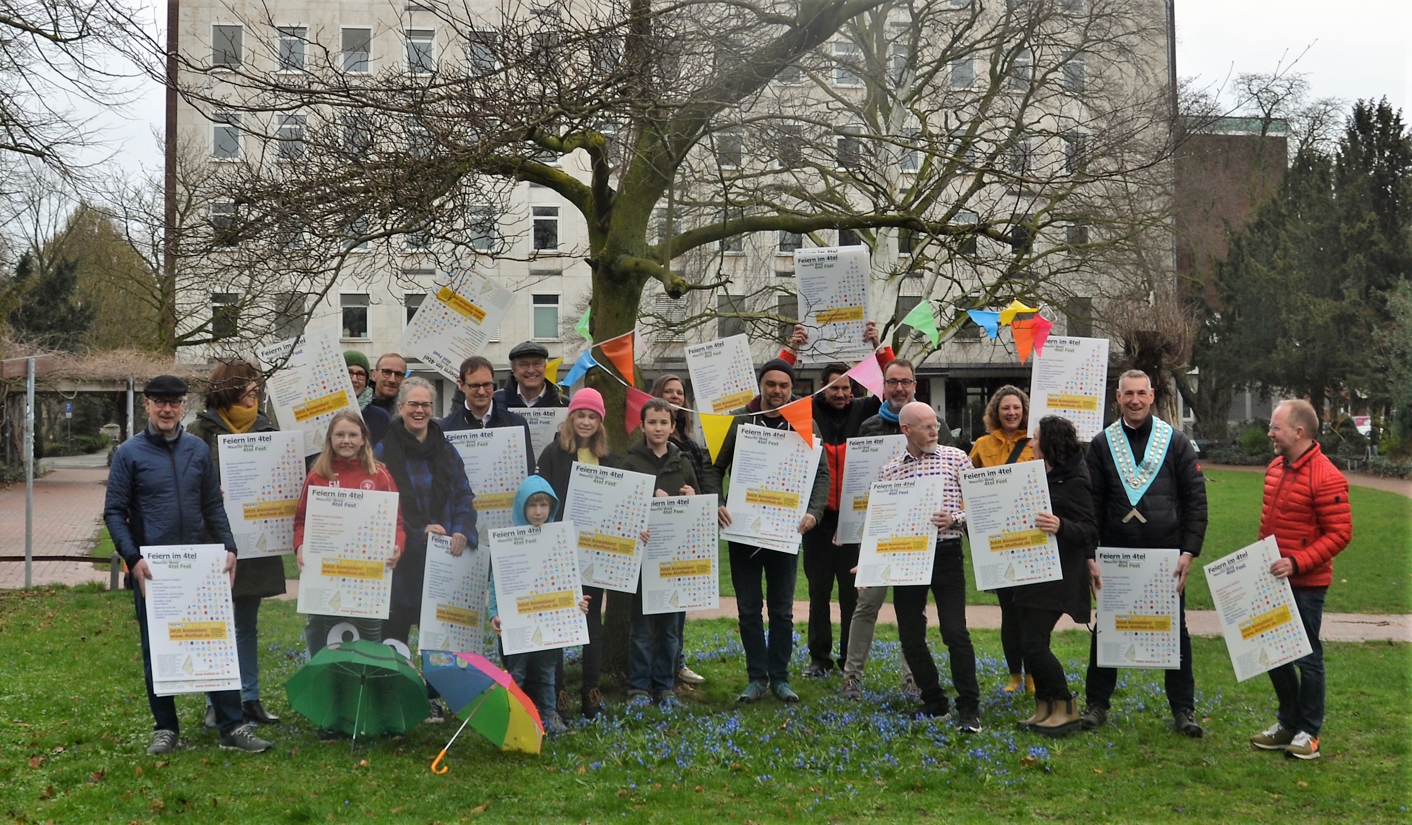 [20.03.2023:] Schon bald, ab 05.04.2023, könnt Ihr Ideen und Veranstaltungen über die 4tel Fest-Homepage anmelden. Bitte denkt daran, Aktionen ggf. mit Euren Nachbar_innen abzusprechen. Bevor es losgeht, brauchen wir erst einmal Eure Unterstützung: Am kommenden Sonntag, 26.03., möchten wir das diesjährige Presse-Foto machen, um damit auf den Anmeldestart hinzuweisen. Wir treffen uns um 11 Uhr auf Linnenbrinks Wiese (an der Warendorfer Str. gegenüber vom Cinema). Es wäre schön, wenn möglichst viele Nachbar_innen mit auf’s Foto kommen, damit das Bild schön voll und bunt wird und deutlich macht, dass unser Fest von vielen Menschen gemeinsam organisiert und getragen wird. Natürlich kann auch gern alles mit auf das Foto, was für Euch das 4tel Fest symbolisiert; z.B. ein Musikinstrument, Eure Tanz-Schuhe, eine bunte Theaterperücke, die Kaffeetassen, der leuchtende Sonnenschirm, Wimpel … etc. … Lasst Euch gern etwas einfallen, kommt vorbei und bringt Eure Nachbar_innen gleich mit.